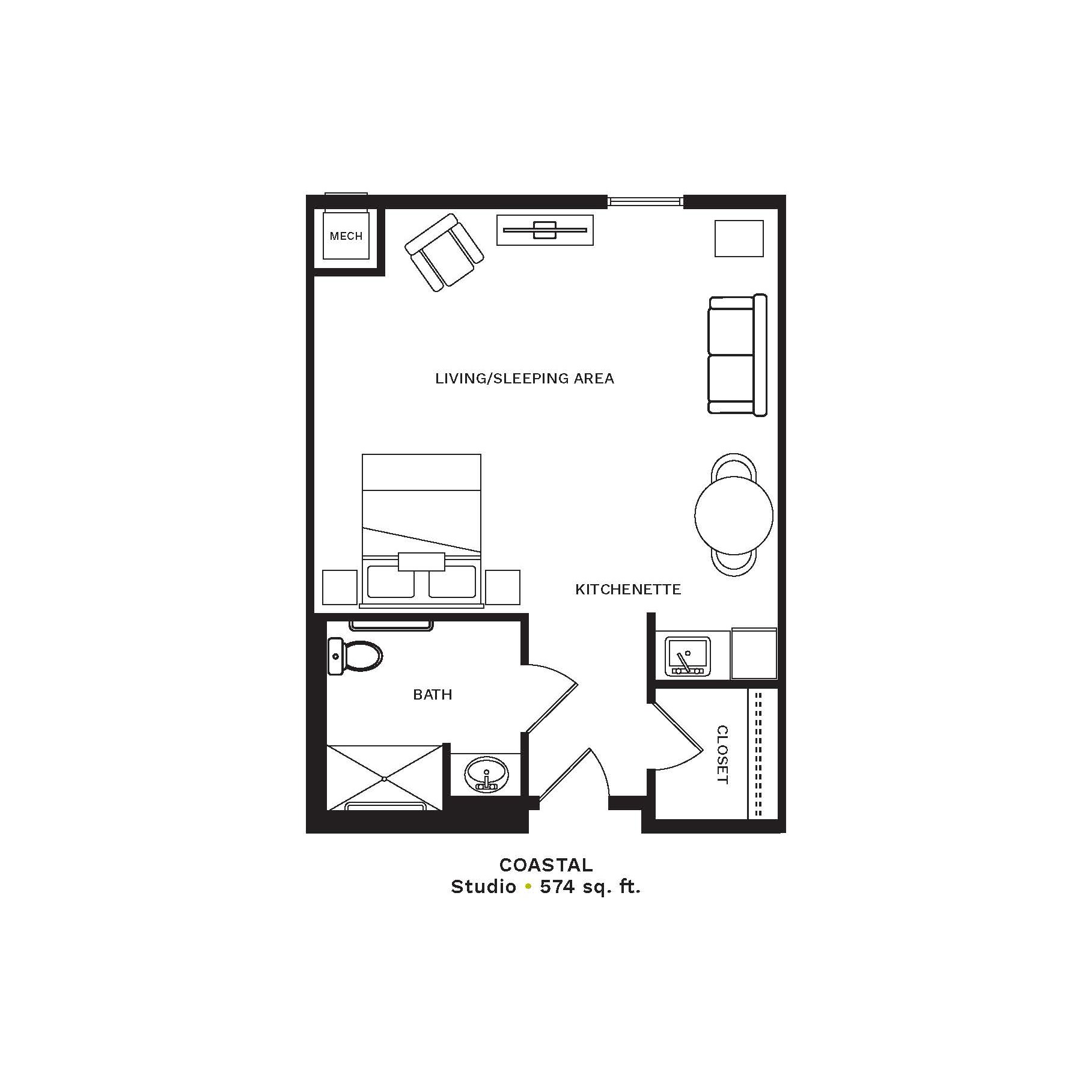 Choice of studio, one-bedroom, and two-bedroom apartment styles